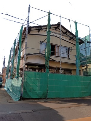 木造家屋解体:養生を設置し、周辺に留意しながら作業いたします。